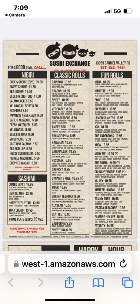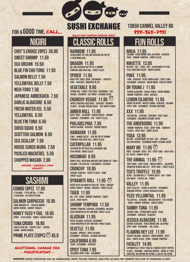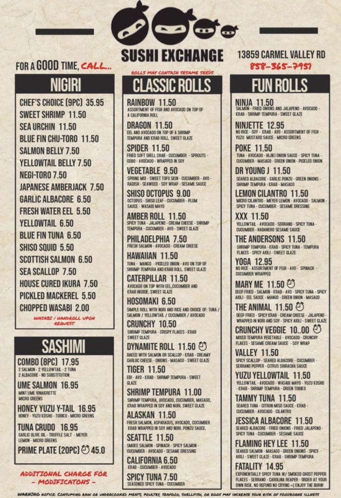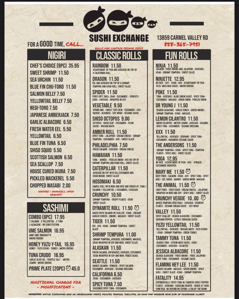 Sushi Exchange Menu (Update 2025)